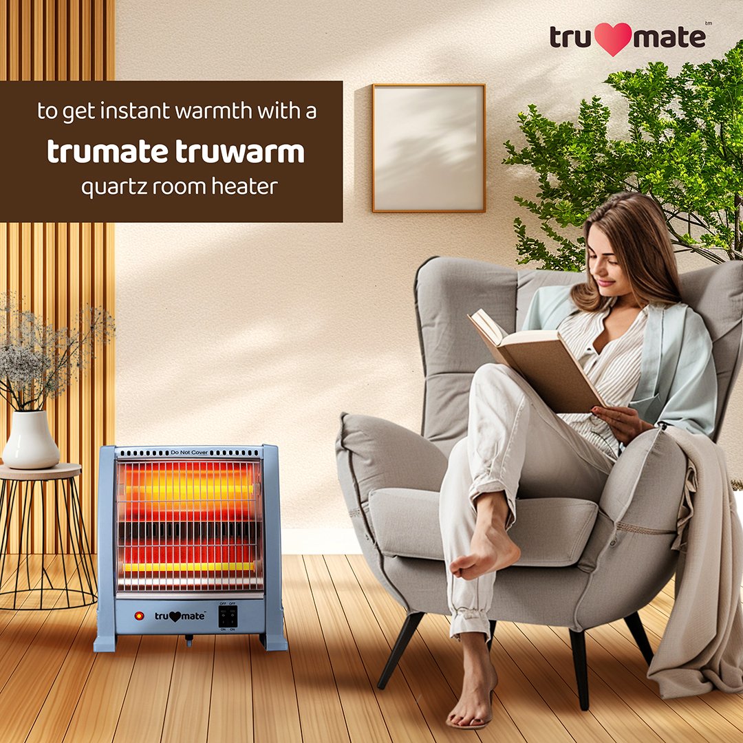 quartz heater 800w, trumate room heater, electric quartz heater india, room heater under 2500, dual heat setting heater, winter heater for home, tip over safety heater